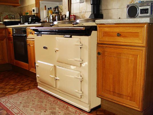 Traditional English Breakfast with egg, bacon, sausage, mushrooms and tomatoes all prepared on our Aga.